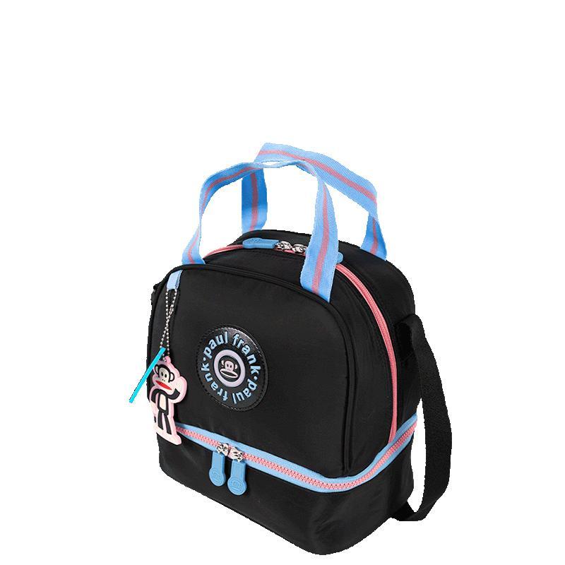A lancheira 2 compartimentos Paul Frank Fun, nas cores preto e rosa, é uma escolha ideal para quem busca praticidade e estilo. Parte da coleção Paul Frank Fun, este modelo é confeccionado em material de nylon, garantindo durabilidade e resistência. Com dois compartimentos, a lancheira permite organizar os alimentos de forma eficiente, mantendo tudo separado e fresco. A alça transversal é regulável, proporcionando conforto ao transportar, enquanto o fechamento com zíper assegura que os itens permaneçam seguros. O interior é resistente a líquidos, facilitando a limpeza e evitando preocupações com vazamentos. Além disso, a lancheira conta com alças de mão duplas, que oferecem uma opção adicional de transporte. O puxador personalizado e o logo em baixo relevo adicionam um toque especial ao design. Para completar, a lancheira vem acompanhada de um pingente, tornando-a ainda mais charmosa. Com fácil limpeza e um visual divertido, é perfeita para o dia a dia.