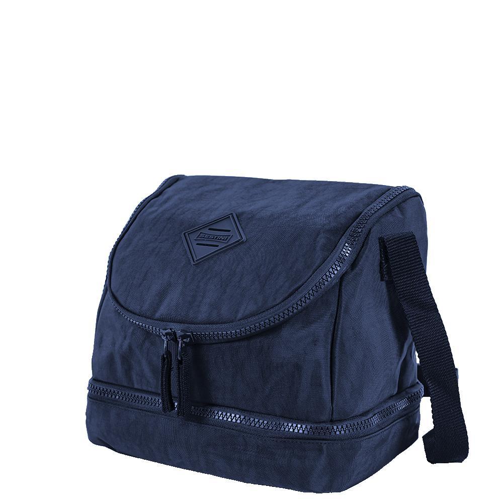 Lancheira 2 Compartimentos Sestini Lunch Crinkle 2 - Azul produzida em nylon, possui interior resistente à líquidos, alça transversal regulável, fechamento com zíper e alça carona.