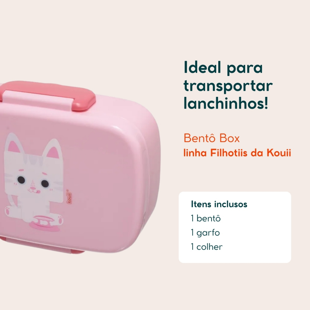 | Lancheira Bentô Box Com Talher e Divisória Infantil Kouii Gatinho R... este produto | R$ 68,99 | 36% | 5.0/5 | 7 |