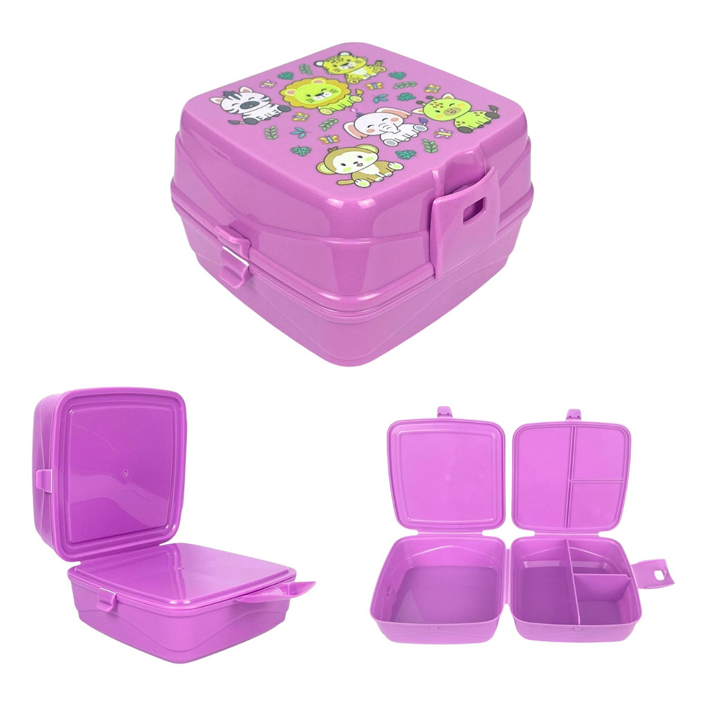 Lancheira Dupla Com 4 Divisórias Infantil Escolar Retrátil A Lancheira Dupla com Divisória conta com quatro compartimentos, sendo perfeita para levar seus lanches para qualquer lugar, ocupando menos espaço na bolsa. Suas travas de segurança impedem qualquer vazamento, trazendo muito mais segurança! Informações : - Marca : Keita - Composição : Polipropileno - Cor : Roxo ou Verde - Modelo : Animais ou Lunch - Validade : Indeterminada Medidas :( CxLxA ) - Comprimento : 15 x 15 x 10cm - Divisórias : 4 - Peso : 180g Contém : 01 -Lancheira Dupla Com 4 Divisórias