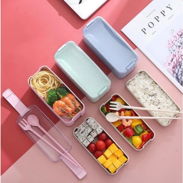 Lancheira Marmita 900ml 3 Andares Com Talheres Hermetica Para Micro-ondas Bento