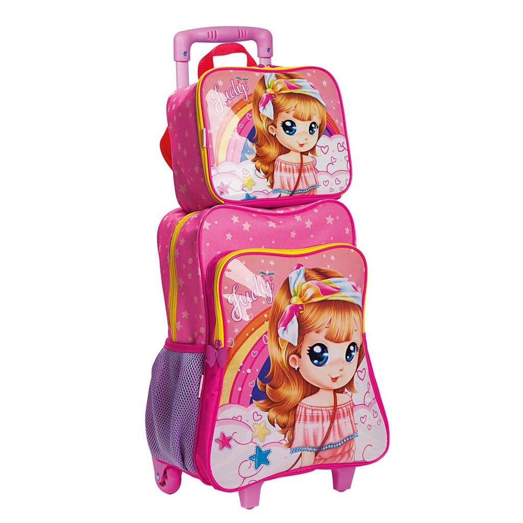 A Lancheira Pequena Sestini Judy 20M PLUS. Produzida em poliéster, material muito resistente. Possui painel frontal em PVC que facilita a limpeza, fechamento em zíper e alça de mão. Tem alça de costas regulável, interior resistente a líquidos e identificador no verso para colocar seu nome. Além disso, tem sistema de alça carona que permite você acoplar à sua mochila de rodinhas facilitando o transporte e ainda acompanha Garrafinha e Potinho. *Produto SESTINI certificado pelo INMETRO Registro 003954/2013 - OCP - 0061 Possui a Altura: 18 Cm - Largura: 22 Cm - Profundidade: 11 Cm - Peso: 0,2 KG - Capacidade Total: 4 L
