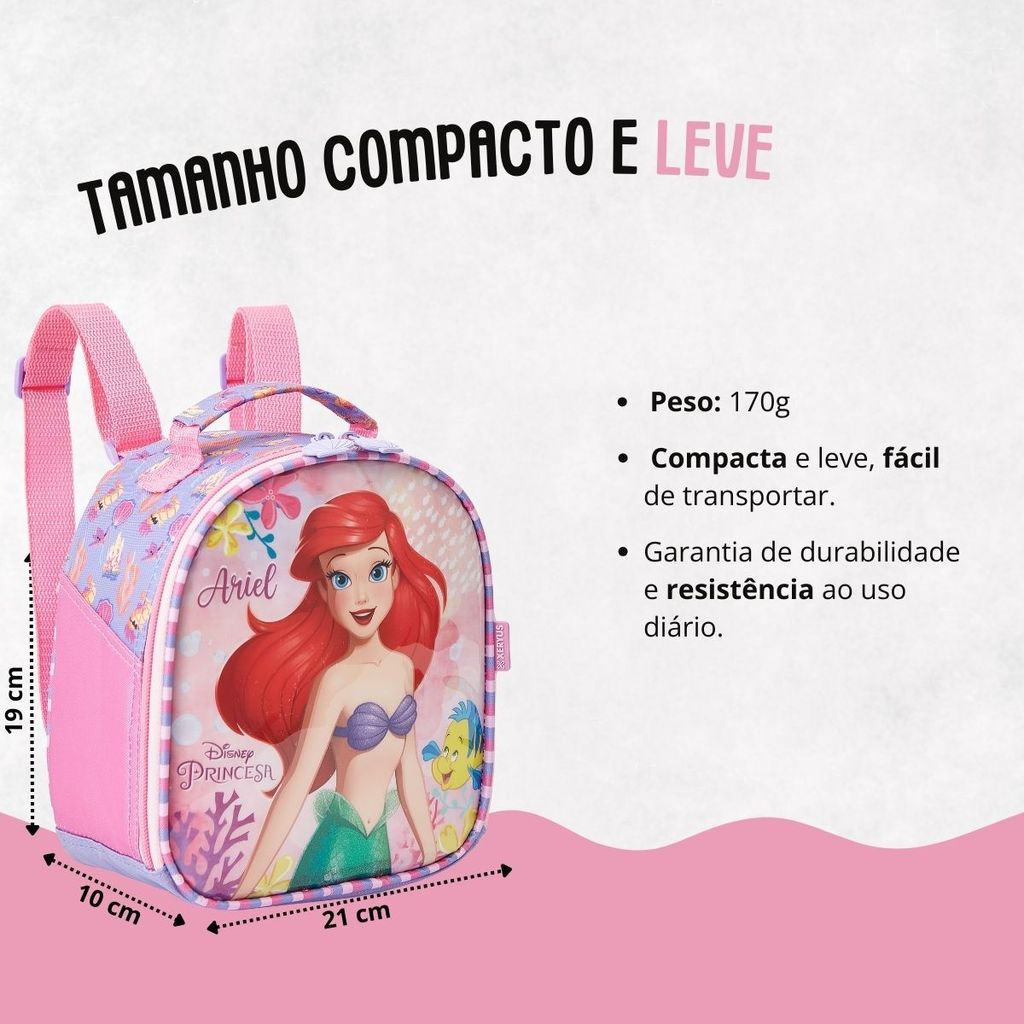 Lancheira Princesa Ariel Rosa Térmica Escolar Infantil