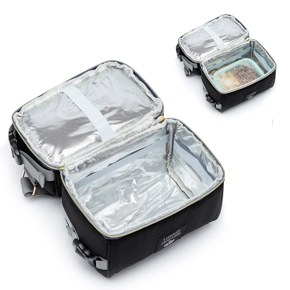 Características - Marca: Lequeen - Modelo: Lancheira Térmica Pequena - Medidas (AxLxP):22x20x12 cm - Peso: 0,330kg - Capacidade: 5 litros - Possui 2 compartimentos térmicos - Possui amplo espaço interno - Confeccionada em tecido 100% poliéster Oxford de alta resistência - Possui 4 elásticos para talheres - Possui 3 elásticos maiores para prender objetos como garrafas - Possui parte superior menor com zíper para pequenos objetos - Possui zíper dourado - Possui TAG da logo marca costurado - Possui alça regulável e fixa - Possui alça de mão reforçada e acolchoada - Possui porta mamadeira/garrafa avulso com fechamento em cordão - Possui gancho na lateral para acoplar a porta mamadeira/garrafa - Produto autêntico e resistente ______________________________________ Itens Inclusos: 1x lancheira 1x porta garrafa ______________________________________ Indicações de uso - Lancheira para escola - Lancheira para viajar - Lancheira para passear - Lancheira para academia - Lancheira para serviço ______________________________________ Cuidados de conservação - Evite carregar excesso de peso - Embalar objetos com cantos vivos cortantes - Para limpeza, utilize apenas pano úmido ou esponja macia e sabão neutro. Não expor a luz do sol para secar - Não utilizar nenhum produto químico para limpeza - Conservar em local seco e arejado