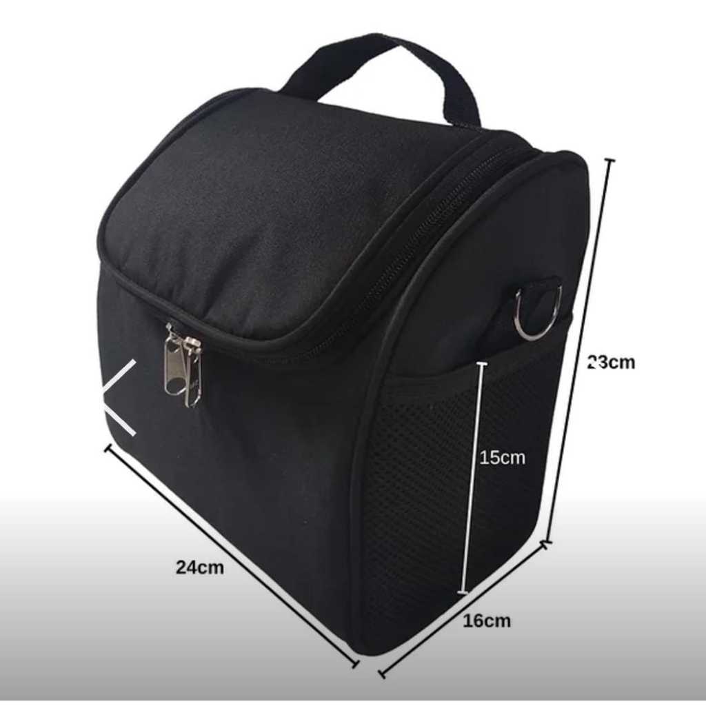 NOSSA MISSÃO É LEVAR AO CONSUMIDOR UM ESTILO DIFERENCIADO DE PRODUTO, UNINDO CONFORTO E DURABILIDADE Bolsa Térmica Central térmica A Bolsa Térmica da Central térmica é confeccionada com matéria prima de altíssima qualidade, com o melhor acabamento para cada tipo de tecido e uma durabilidade sem comparação! PRODUTO OFERECE : - Ideal para carregar até 4 (quatro) refeições : - Revestimento Externo: Tecido Oxford na cor Preto, zíper Preto - Revestimento Interno: Espuma PAC de isolamento térmico, revestida de folha de Pvc. - Para facilitar o transporte, a lancheira possui uma alça de ombro que pode ser regulada conforme a necessidade e características do cliente. - Alça de mão acolchoada. ACESSÓRIOS INCLUSOS: Medidas Aproximadas: Altura : 24m Largura : 23cm Profundidade : 15 cm Peso : 310 gramas - Sem potes - Capacidade Aproximadas : 7 L NOTA : Ao carregar alimentos congelados ou muito frios por um longo período, pode-se notar umidade no revestimento externo do produto, porém tal umidade não causa dano e nem agride o produto. ATENÇÃO!!! Antes de utilizar suas almofadas térmicas, siga corretamente o MODO DE USO gravado no próprio produto, pois do contrário, elas podem estourar; Antes de aquecer seu alimento no micro-ondas, destampe seu pote. IMPORTANTE: VEJA A RECOMENDAÇÃO DE USO E LIMPEZA DE SEU PRODUTO, LOCALIZADA MAIS ABAIXO NA DESCRIÇÃO. SOBRE O TEMPO DE CONSERVAÇÃO DO SEU ALIMENTO : Para até 16:00 horas de conservação. O tempo de conservação aqui indicado é com referência ao alimento previamente resfriado. Os testes mencionados foram feitos com alimentos gelados e congelados. E a quantidade de horas descritas acima, refere-se a quanto tempo o alimento levou para atingir 20 graus e permanecer a essa temperatura por até 4 horas, o que é considerado seguro. Alimentos em ambientes acima de 20 graus já estão mais propensos a proliferação de bactérias. Para levar sua comida aquecida, o recomendado é deixa-la na bolsa térmica por até 3 horas. Acima desse período, a ingestão do alimento pode ser perigosa. Vale lembrar que o tempo de conservação também pode variar devido a fatores externos, que mudam conforme a região, a temperatura do dia e o próprio uso da bolsa. Qualquer dúvida, entre em contato conosco. LIMPEZA: utilizar apenas pano levemente umedecido em água e sabão neutro (e não detergentes). Não utilizar secadores, máquinas secadoras e lavadoras. Secar ao ar livre, com os compartimentos abertos.