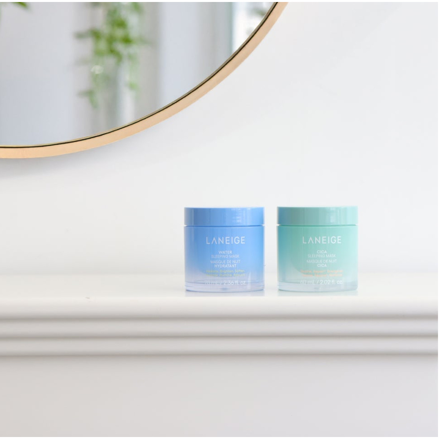 🔸🔸🔸 LANEIGE Water Sleeping Mask_EX 70ml Overnight mask featuring Sleeping Micro Biome™ and enhanced Pro-biotics Complex that strengthen the skin’s defense to realize a well-slept, bright and clear complexion. 🎈Feature ◉ Sleeping pack for tired skins : Gel-type moisturizing sleeping mask that will add a well-rested glow and radiance to your fatigued skin. ◉ Quick 5-sec care: Apply and leave it overnight for deeper and richer moisturization. ◉ Experience a more supple, radiant, and hydrated skin in the morning yourself. ◉ Moisture boost: Squalane boosts moisture to create a more supple and smooth-textured skin. ◉ Contains Sleeping Microbiome tm and Strengthen barrier: Probitotics Complex re-balances skin condition and strengthens skin barrier with the patented green probiotics ferment extract that dervied from 23.8 billion probiotics. You will feel the difference as soon as you wake up in the next morning. 🔸🔸🔸 LANEIGE Cica Sleeping Mask 60ml Overnight mask that cares dry and sensitive skin through the regenerating effect of powerful cica ingredient, Forest Yeast and Sleeping Microbiome™ technology Sleeping Microbiome tm ingredient restores collapsed skin balance . 🎈Feature ◉ Forest Yeast offers 111.9% more powerful skin barrier-strengthening effect than madecasocide after 16 hours of application to calm irritated skins. ◉Contains Pantenol and Japanese Cypress Leaf Water for better hydration and soothing effects to skins. ◉ FREE from 9 hazardous ingredients and completed 4 skin tests, proven to be safe for sensitive skins. 🔸🔸🔸 LANEIGE Bouncy & Firm Sleeping Mask 60ml A plumping and firming overnight sleeping face for bouncy, glowing, hydrated skin 🎈Feature ◉ The firming sleeping mask makes volumizing and glowing skin in every morning. ◉ Provides resilience, moisture plumping, reduced pore size, reduced amount of wrinkles, and increased firming effect. ◉ The moisture layer keeps your skin moisturizing during the night to make moisture glowing skin on the next day. ◉ The peony and Collagen Complex™ obtained from elasticity blending technology provide firm elasticity to skin. Contains peony extract and low molecular collagen. 🎈How To Use 1. Apply in the evening after cleansing as the final step in your skincare routine and before bed. 2. Take an appropriate amount and apply gently from the center of the face outwards, following the texture of the skin. You can also gently massage it into areas that need extra care. 3. Allow it to absorb completely into your skin and go to sleep without washing your face (do wash your face the next morning). ⊙ All our products are 100% authentic and made directly in Korea. 💯 ⊙ We maintain a ready stock to ensure you receive your order as quickly as possible. ✈️ ⊙ Orders placed by 3:00 PM (KST) will be shipped the same day. 🚚 ⊙ If you have any questions, feel free to reach out via chat! We'll get back to you as soon as we can. 🌷