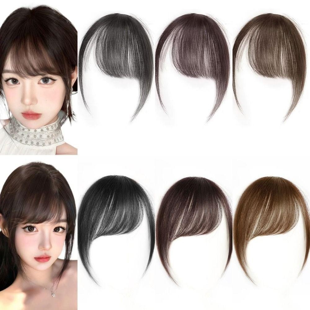 LANFY Franja Lateral De Cabelo Humano , Extensão Natural , Franjas Frontais Invisíveis Marrons Retas