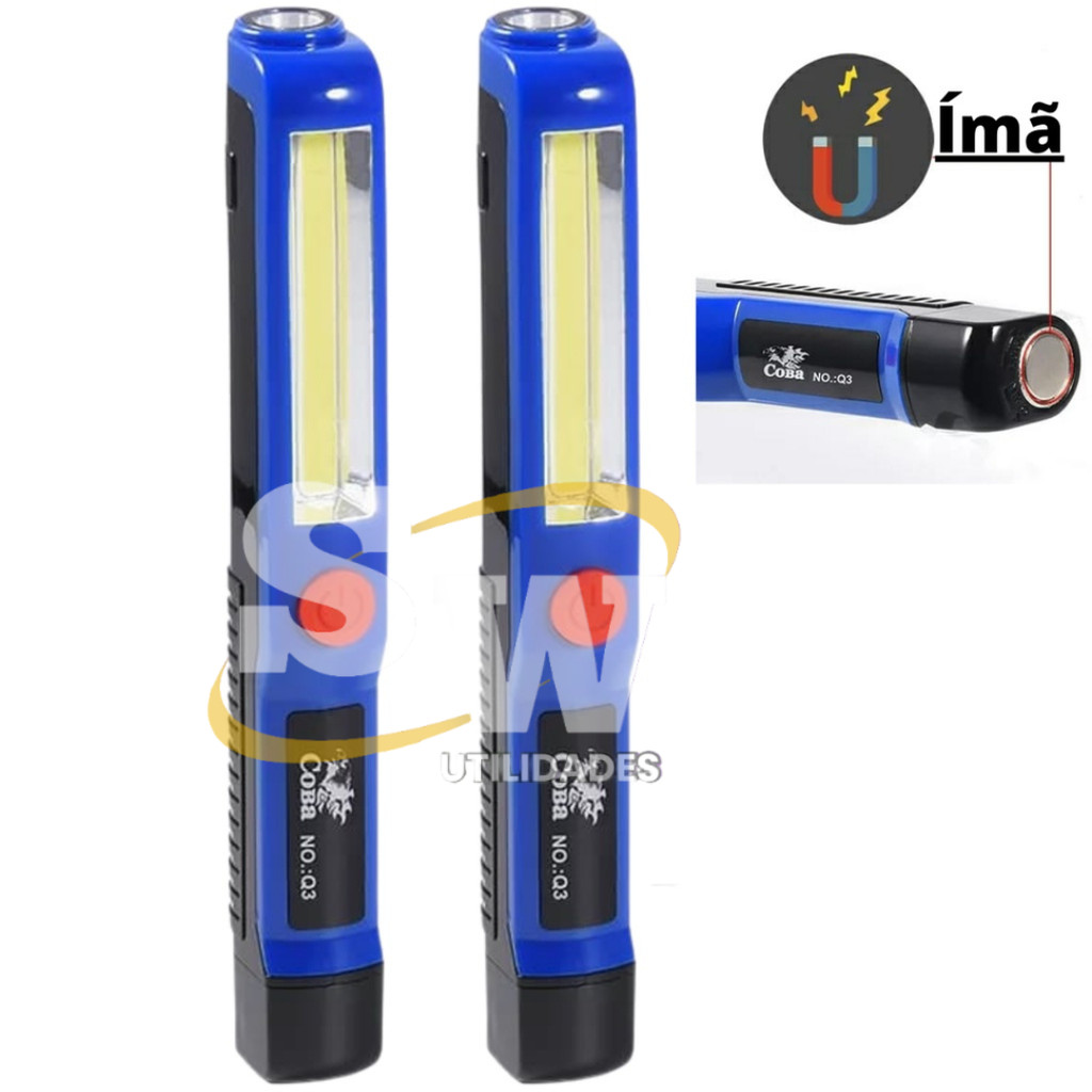 Ideal para mecânicos e eletricistas por possuir um imã muito forte em sua extremidade, permitindo desta forma fixar em qualquer parte metálica do veículo sem necessidade de fios ligados à tomada ou bateria. * Equipado com a nova tecnologia COB LED * Produz 400 lumens de luz intensa. * Tamanho de 17 cm * Possui 3 tipos de iluminação sendo : 1 - Pen Light com 300lumens de luz intensa 2 - Pen Light com 200 lumens de luz intensa 3 - Modo lanterna ( farolete ) * Possui imã que pode ser fixado em qualquer parte de metal * Corpo plástico reforçado * Supera iluminação tradicional em até 50 vezes por centímetro * O design oferece qualidade de holofote, mas cabe no seu bolso, porta luvas ou cinto de ferramentas * Clip para acomodação no bolso * Lanterna led na ponta da frente * Produzido em plástico ABS durável e pintura automotiva * Alimentada por 2 pilhas AAA, que são inclusas e já vai testado