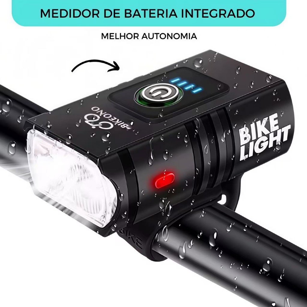 Lanterna Bicicleta Luz Forte Farol De Bike 2 Led Cree T6 800 lumens Recarregável Usb Com Medidor 5 Modas