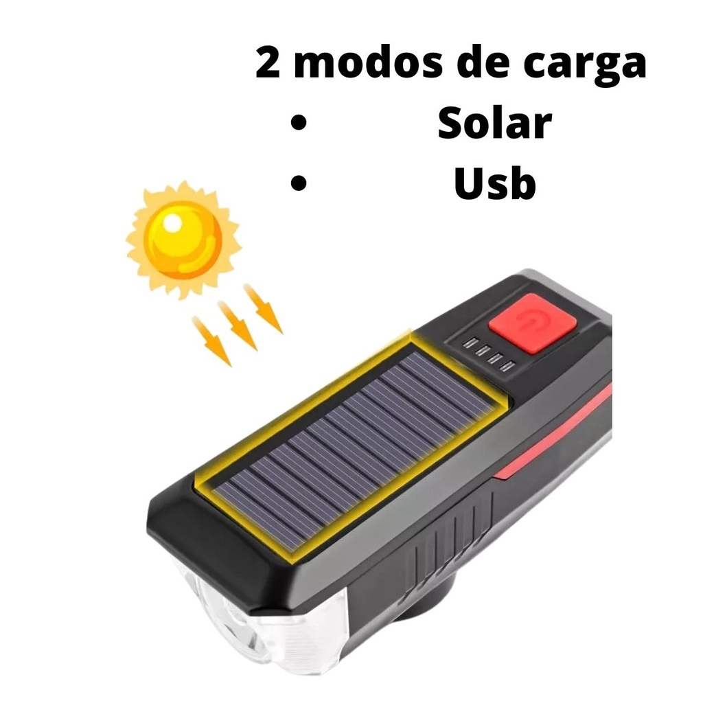 Lanterna De Bike Solar Com Buzina Super Potente Recarregável 3 modos de luz