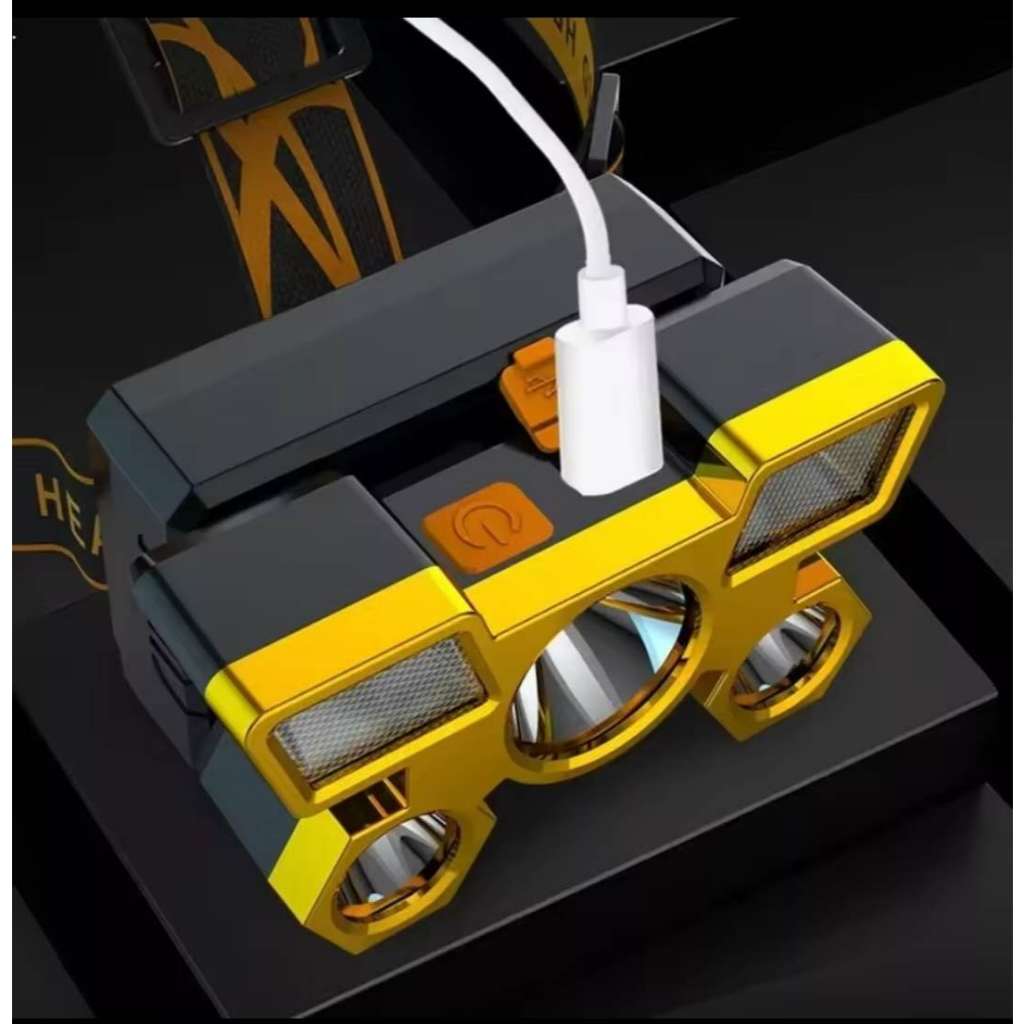 Lanterna de Cabeça Holofote 5 LED Super Brilhante USB À Prova D'água Recarregável
