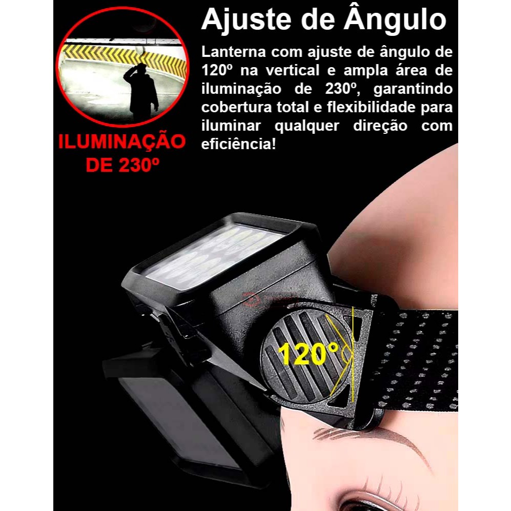 Essa lanterna é equipada com a mais nova tecnologia de iluminação do mercado. Conta com 8 Super Leds SMD 3030, que são usados em faróis de diversos veículos na Alemanha, nos EUA e na Holanda, devido a sua alta potência de iluminação e brilho, alto desempenho, baixo consumo de bateria e longa vida util. Esse suporte de cabeça é extremante confortável pois fixa bem a lanterna e se adaptando a cabeça não apertando tanto, pois é ajustável, além de absorve o suor e ser removível, podendo ser removido da lanterna para ser lavado. Possui alta elasticidade, ser adaptando aos diversos formatos e tamanhos de cabeça e capacetes, desde capacete de ciclista até capacete da área de construção civil, como: eletricistas, de segurança, construtores, engenheiros entre outros. O sensor de proximidade indutivo com alcance de 15 cm permite ligar e desligar a lanterna sem tocar nela, proporcionando praticidade e higiene no uso. Além disso, você pode ativar ou desativar o sensor facilmente com um botão dedicado, garantindo flexibilidade e controle total conforme sua necessidade!" A lanterna é desenvolvida com ABS e materiais de alta qualidade, sendo resistente a impactos e riscos, a prova d’agua e poeira Lanterna com ajuste de ângulo de 120º na vertical e ampla área de iluminação de 230º, garantindo cobertura total e flexibilidade para iluminar qualquer direção com eficiência! Conta com display inteligente que permite acompanha em tempo real o nível de carga da bateria enquanto você a utiliza e também durante o carregamento, proporcionando total controle e confiança para suas atividades Versatilidade: Lanterna de cabeça recarregável com 5 modos de uso - Alto, Médio, Baixo, Estroboscópio e SOS Iluminação Potente: Equipada com 8 LEDs super brilhantes, proporcionando excelente visibilidade em atividades noturnas. Resistência à Água: Classificação IPX65 à prova d'água, ideal para caminhadas, corridas, ciclismo e trabalhos noturnos. É desenvolvida com ABS e materiais de alta qualidade, sendo resistente a impactos e riscos, a prova d’agua e poeira Autonomia Prolongada: Bateria recarregável de longa duração para uso contínuo. Design Ergonômico: Leve e ajustável, proporcionando conforto e praticidade durante o uso prolongado. Com o Sensor de Movimento você pode ligar os LEDs da lanterna ou desligar, Pacote Inclui: 01 Lanterna de Cabeça 01 Cabo Crregador