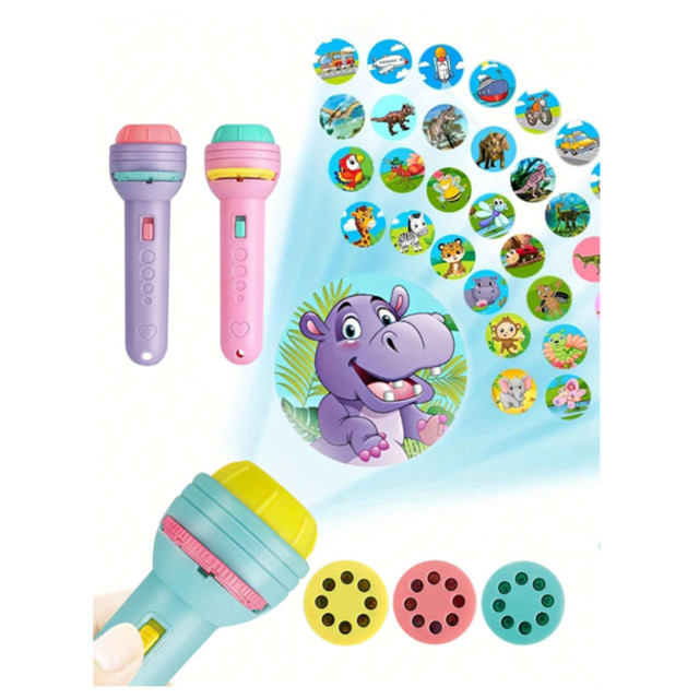 Lanterna de Projeção Infantil Diversão 3D Crianças com 24 animais diferentes