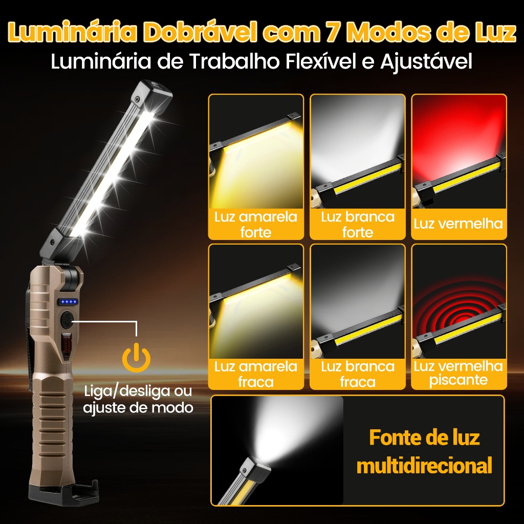 Lanterna de Trabalho COB LED Recarregável Magnética 180° IPX6 Portátil