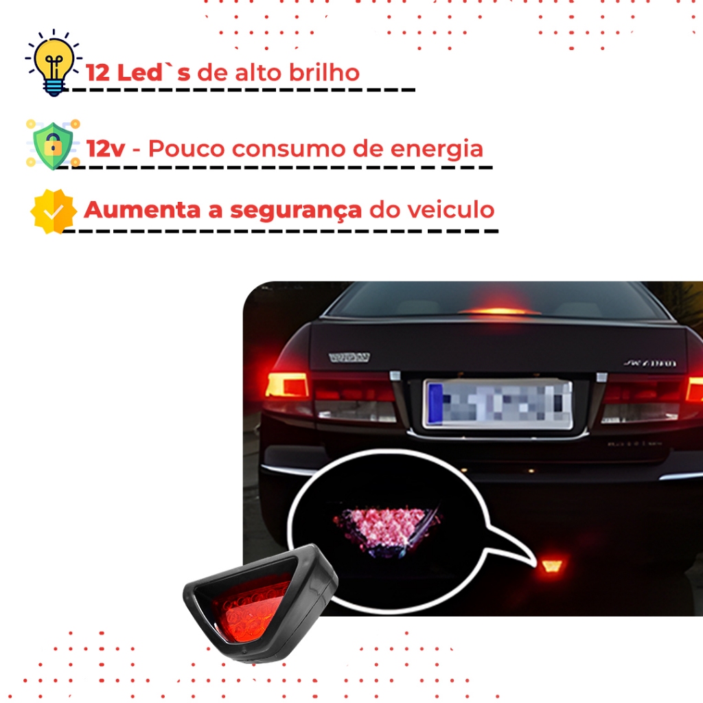 BRAKE LIGHT UNIVERSAL TRIANGULAR 12 LEDS Garanta muito mais segurança ao dirigir e ao mesmo tempo, deixe seu carro muito mais moderno e com estilo diferenciado utilizando este Brake Light Universal para Luz de Freio com 12 LEDs. Com ele, você aprimora o sistema de sinalização do seu carro melhorando o nível de alerta para os veículos que seguem atrás ao acionar o freio. Com modelo compacto, não interfere na visão traseira e utiliza LEDs de última geração que emitem luz de alto brilho, consumindo pouca energia. ---------------------------------------------------------------------------------------------------------------------- * Postagem Rápida em 24 horas úteis! * Produto a pronta entrega! * Todos os nossos produtos são muito bem embalados para garantir a integridade do produto e satisfação do cliente! ---------------------------------------------------------------------------------------------------------------------- * ESPECIFICAÇÕES: Possui utilizar de dois modos. 1º Break light ao acionar o freio se mantem acesso. 2º Estilo Formula1 piscando constante, igual strobo. - Marca: Cinoy - Modelo: YN-BL1386 - Compatibilidade Universal - 12 LED's de Alto Brilho - Há três fios; condução/strobe modo intermitente pisca-pisca, luz de freio positivo e negativo - Cerca de 90 pisca por minuto - Aumentar tanto a segurança rodoviária e estilo de corrida - Composição: Plástico ABS, Alumínio, Led, Cobre, Borracha - Acionado pelo Freio - Veiculo muito mais moderno! - Formato Triangular - Aumenta a Segurança - Voltagem: 12v - Pouco consumo de energia - Emite Luz na Cor Vermelha - À Prova D'agua ---------------------------------------------------------------------------------------------------------------------- * ITENS DA CAIXA: - 1 Brake Light Triangular - Kit de Instalação ----------------------------------------------------------------------------------------------------------------------