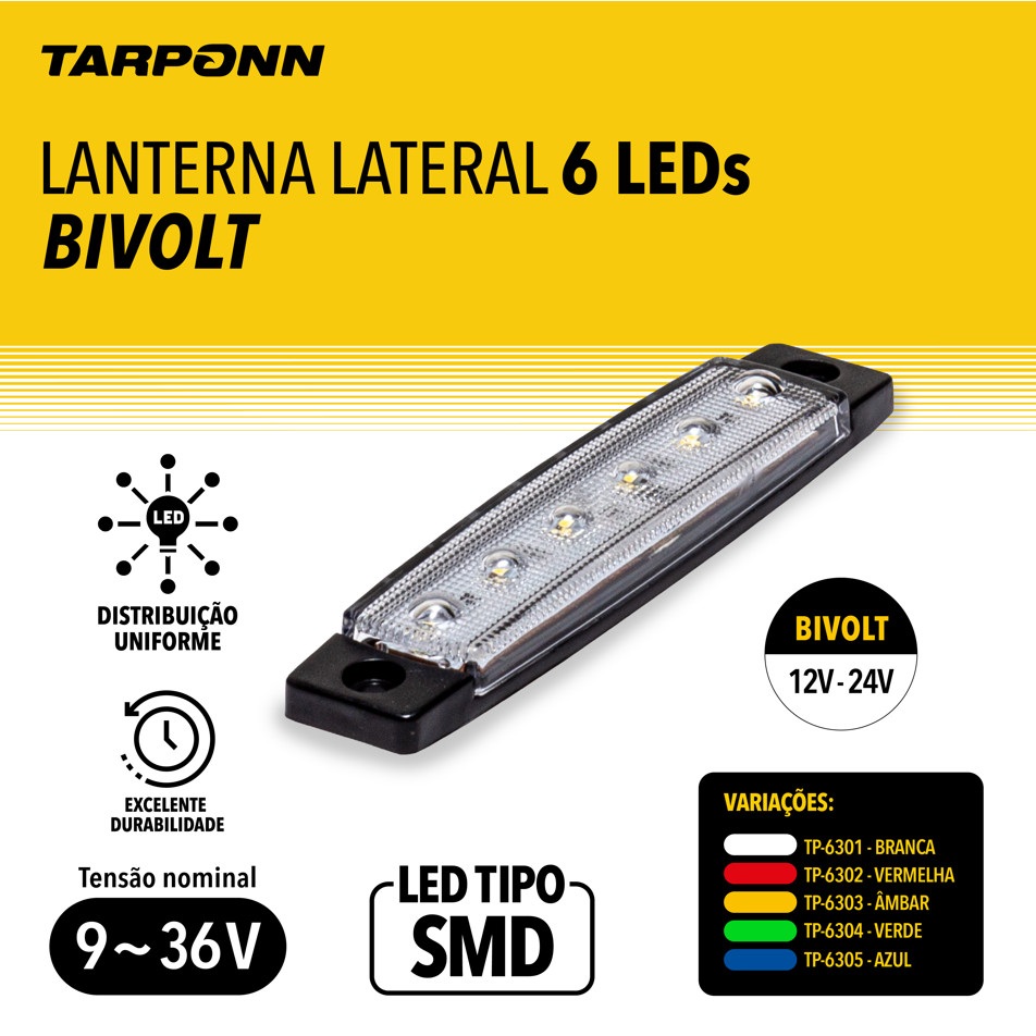 Lanterna Lateral Automotivo Led Cores 12v 24v 6 Leds Tarponn