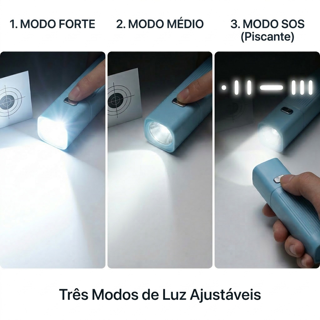 📦 Descrição do Produto 🔦 Lanterna LED Recarregável USB Portátil – Prática, Compacta e Potente! Se você busca uma lanterna leve, eficiente e fácil de usar no dia a dia, essa é a escolha ideal. Perfeita para emergências, uso doméstico, carro, camping ou trabalho. ⚡ Principais Benefícios: ✅ Luz forte e eficiente para ambientes escuros ✅ 3 modos de iluminação: Forte, Médio e SOS ✅ Recarregável via USB (mais economia, sem pilhas) ✅ Compacta e portátil (fácil de levar no bolso) ✅ Bateria interna prática para uso em qualquer lugar 📏 Especificações: 📌 Modos: Forte / Médio / SOS 📌 Alimentação: Bateria interna recarregável 📌 Carregamento: Cabo USB 📌 Design compacto e leve 🎯 Ideal para: 🚗 Uso no carro 🏠 Uso doméstico 🏕️ Camping e viagens 🔧 Trabalho e manutenção ⚠️ Situações de emergência 📦 Conteúdo da Embalagem: 📦 1x Lanterna LED Recarregável 📦 1x Cabo USB ⚠️ Observações: ⚠️ Produto pronto para uso ⚠️ Recomendado carregar antes do primeiro uso