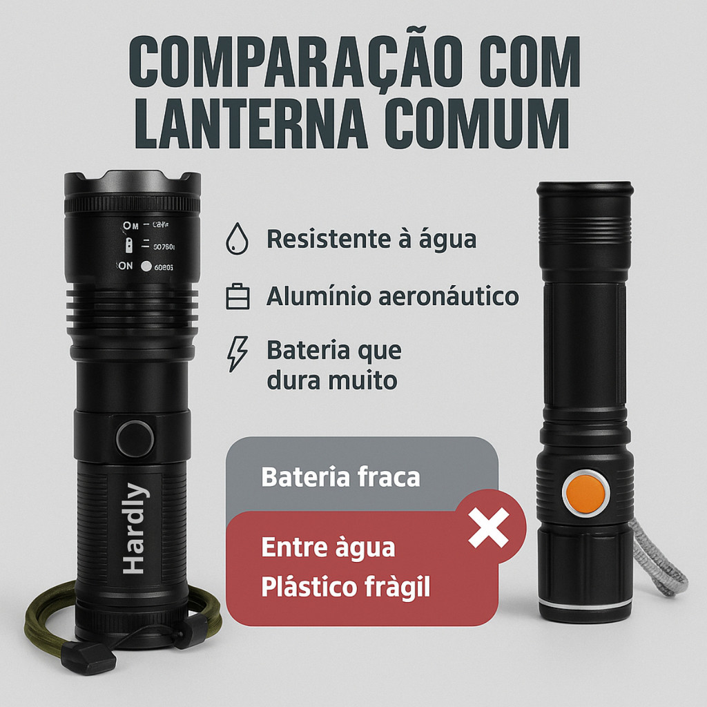 A lanterna ideal para quem busca potência, resistência e praticidade! Com alcance real de até 2.000 metros, corpo em alumínio militar e recarga USB, ela é perfeita para uso profissional e aventuras ao ar livre. 💡 Destaques do Produto: ✅ Alcance real de até 2 km com foco ajustável (zoom) ✅ 5 modos de iluminação: forte, médio, fraco, strobo e SOS ✅ Corpo em alumínio aeronáutico, leve e super resistente ✅ Recarregável via USB (cabo incluso) — sem pilhas! ✅ Proteção IPX8 contra água e poeira ✅ Design ergonômico com alça de segurança ✅ LED XHP160 ou Cree P90 (conforme o lote) ✅ Vida útil de até 100.000 horas 🧭 Ideal para: Segurança e patrulhamento Acampamentos, trilhas e aventuras Pesca, caça e serviços noturnos Uso doméstico em emergências 📦 Itens Inclusos: 1 Lanterna Tática LED 1 Bateria Recarregável 1 Cabo USB 1 Alça de segurança
