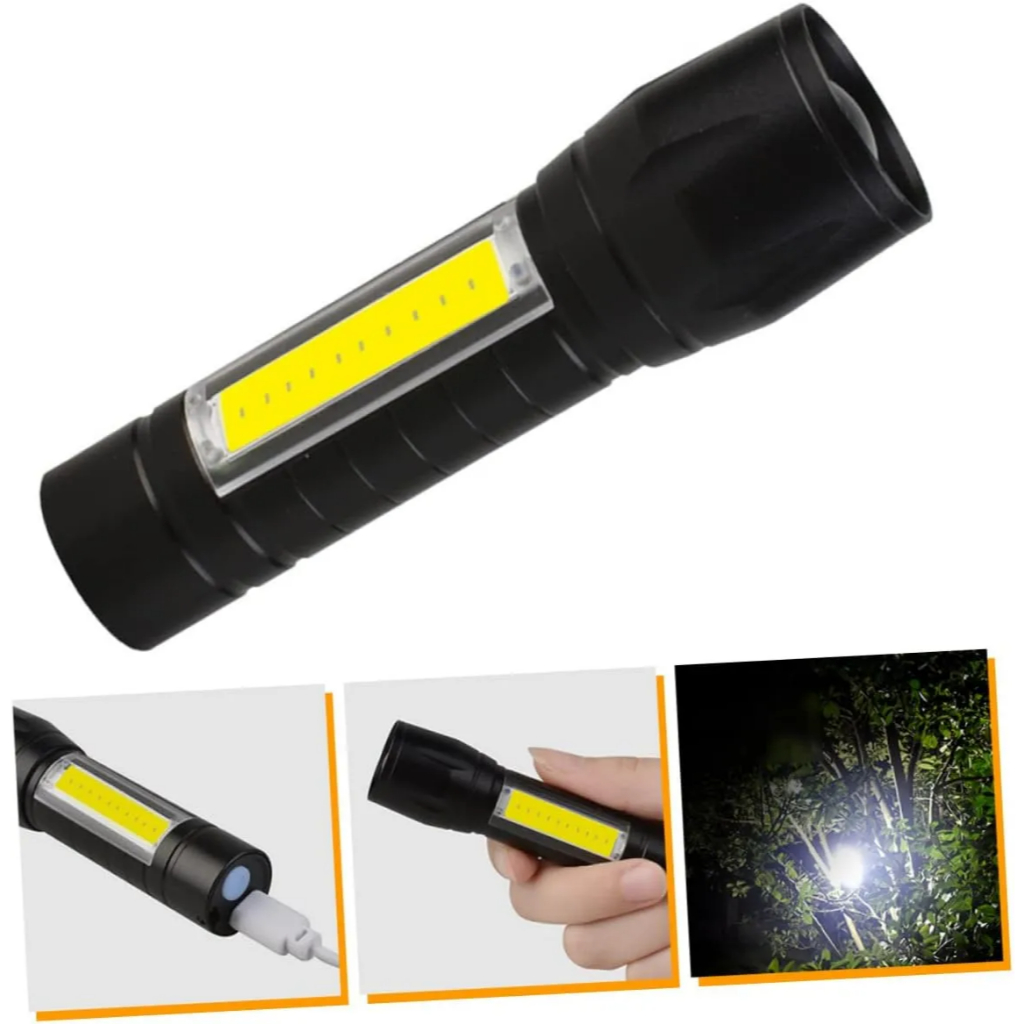 Lanterna Mini LED USB Recarregável - Brilhante Zoom, COB Luz Lateral e Waterproof para Acampamento