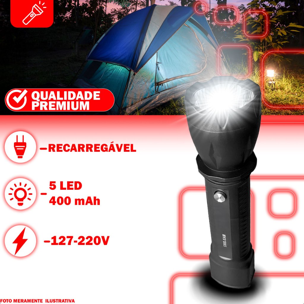 Lanterna Recarregável Portátil 5 Leds Ideal Acampamentos Caminhadas Noturna Atividades ao Ar livre