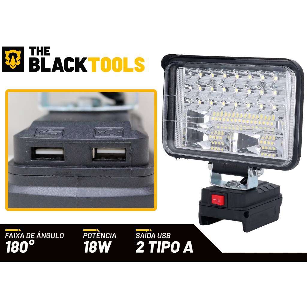 Lanterna Refletor Portátil À Bateria 21v Branca E Fria 6000k The Black Tools