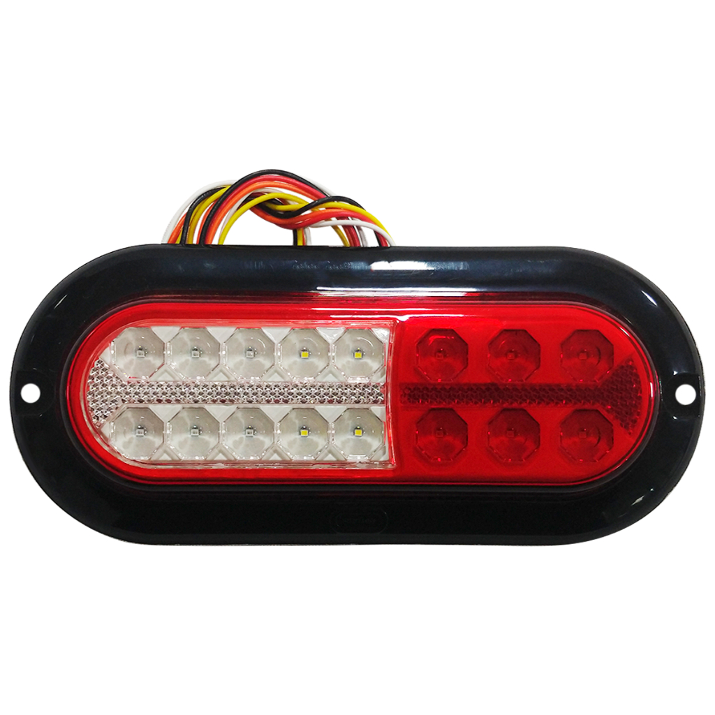 Lanterna à prova d'água (vedação AquaBlock) LED SMD bivolt modelo universal, compatível com carretas, reboques e veículos no geral. Modelos de Aplicação: - Carretinha - Carreta - Reboque - Barco - Jetski - Veículos no Geral. - Dimensões Aproximadas: Altura 8,4cm x Largura 19,3cm x Comprimento 2cm. - Lente em PMMA com proteção Anti-UV; - Base ABS Anti-UV; - À prova d'água (vedação AquaBlock); - Enviada na cor Bicolor (cristal e Vermelho); Esquema de ligação elétrica: - Circuito eletrônico com proteção de ligação invertida; - Fio Vermelho = Freio; - Fio Laranja = Lanterna; - Fio Amarelo = Seta (indicação); - Fio Branco = Ré; - Fio Preto = Negativo (GND, TERRA). - Tensão 12v~24v (Bivolt).