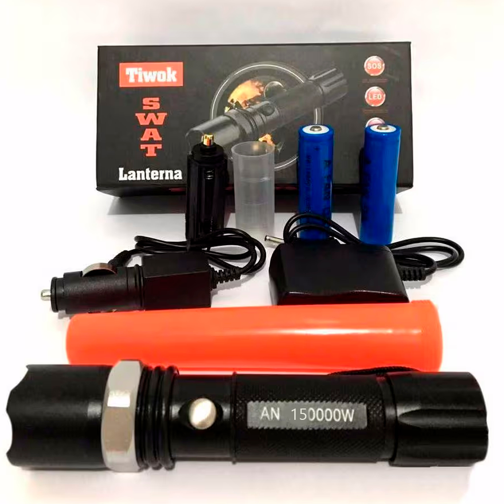COMERCIAL VIPASA DISTRIBUIDORA. Lanterna De Super Led Police Swat Recarregável Potente Camping Pesca Acampamento Portátil Lanterna De Led Recarregável 15000W 54000 Lumens Potente Camping Pesca Portátil Lanterna Militar Perfeita para usar em situações táticas ou em atividades ao ar livre. A lanterna tem ótima qualidade, e versátil e capaz de impressionar com a sua potencia de longo alcance. Com certeza e uma ferramenta de muita importância para atividades como montanhismo, trilhas, escalada, camping, sobrevivência, caminhadas, pescaria, patrulha, policiais e bombeiros entre muitas outras atividades. Características Fabricação do LED: USA Material: Alta resistência em liga de magnésio, usinagem de pressão, dura e resistente não se deforma. Qualidades do projeto: Resistente a agua, a prova de choques, a prova de corrosões, cabo anatômico, possui cordão de pulso ajustável, botão liga e desliga na parte de trás. Modos de funcionamento: 100% da capacidade (Super Potente), 50% da capacidade (Econômica), Strobo (pisca pisca) e SOS Universal. Zoom: Novo Sistema de Foco regulável - 1 a 2000x vezes Fonte de luz: Utiliza LED - L2, com vida útil ate 100.000 horas de uso. O LED L2 e usado pela Marinha Norte Americana, Guarda Costeira, Bombeiros, Policiais, Equipes de Busca e Salvamento Norte Americano. Alimentação: 1 x Bateria Li-íon 26650 de 1-6800mAh - 3.7V Recarregável LED CREE Fabricado nos EUA. O que segue na embalagem são os itens descritos abaixo. x Lanterna Tática de Led Recarregável - x Cordão de Pulso x Bateria Recarregável de Lítio 1-6800mAh x Adaptador para usar com baterias 18650 x Carregador residencial Bivolt Lanterna Police Swat Super LED 15000W Modelo XPE-1610 Marca LinkSky Lanterna de alta potência Lanterna tática Iluminação profissional Lanterna portátil Resistente e durável Ideal para segurança Uso policial Feixe de luz potente Lanterna recarregável Compacta e leve Acessório para aventuras Lanterna para camping Equipamento de emergência Lanterna com ajuste de foco Alta intensidade de luz Lanterna multifuncional Comercial Vipasa Distribuidora