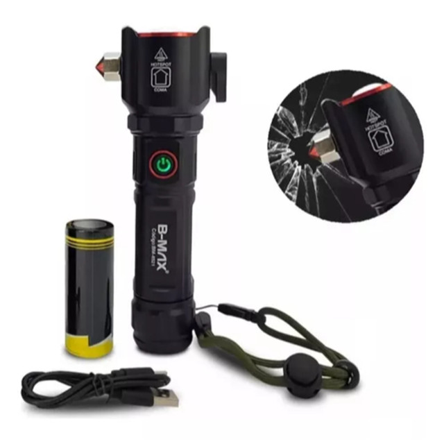 Lanterna Tática Militar Sabre de Luz Led Recarregável Multifuncional Martelo Quebra Vidro Super