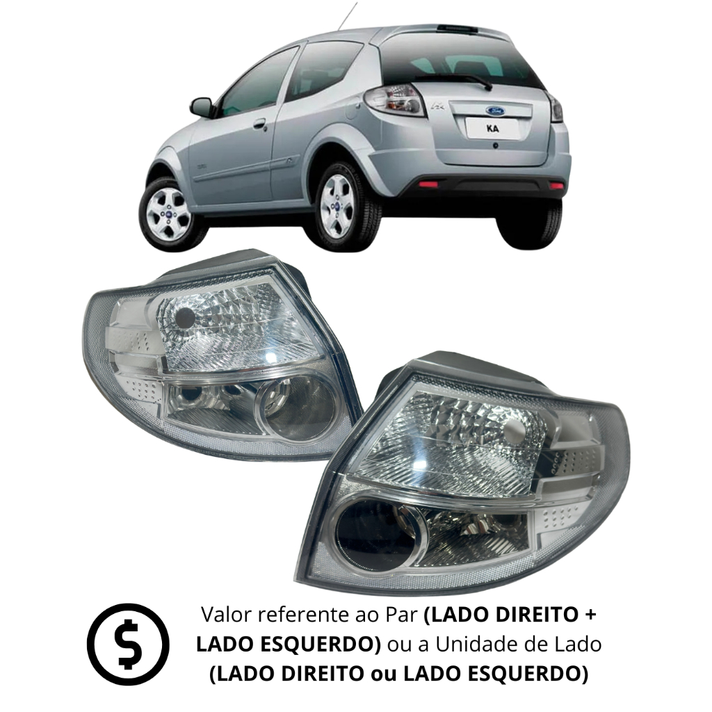 🔧Par de Lanternas Traseira para Ford Ka Twist 08 a 13🚗 Dê um visual renovado e mais segurança ao seu Ford com este par de lanternas traseira de alta qualidade, compatíveis com os modelos Ka Twist – 2008 a 2013. Produto novo, com excelente acabamento e encaixe perfeito, ideal para reposição ou upgrade do seu veículo. ✅ Especificações do Produto: Produto: - Par Lanternas Traseiras (lado esquerdo e direito). Aplicação: - Ford Ka - 2008, 2009, 2010, 2011, 2012, 2013 e 2014. - Ford Ka Twist - 2008, 2009, 2010, 2011, 2012, 2013 e 2014. Cor: - Lanterna traseira: Cristal. Encaixe: Perfeito, sem necessidade de adaptações. Instalação simples e rápida. Produto novo, embalado e pronto para instalação. 🚫 Importante: Verifique o ano e modelo do seu veículo antes da compra para garantir a compatibilidade. 🎯 Destaques: Visual original, com acabamento de primeira. Alta durabilidade e resistência. Ideal para reposição em caso de trincas, amarelamento ou danos. Garanta agora mesmo o seu par de lanternas traseira e deixe seu Ka ainda mais seguro e com visual renovado!