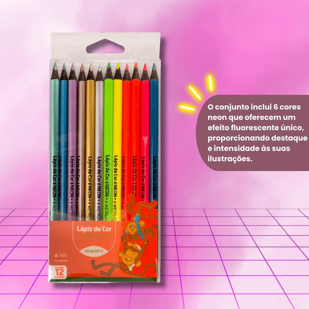 Lápis 12 Cores Especiais 6 Cores Neon e Metálicas Leo&Leo Leonora - 72107