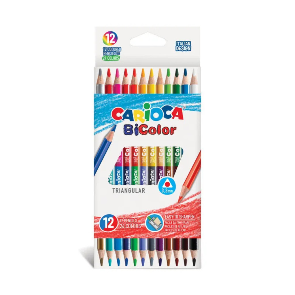 O Lápis de Cor 12/24 Cores Bicolor Carioca é a escolha ideal para estimular a criatividade das crianças com conforto, segurança e qualidade. Seu corpo triangular ergonômico facilita o manuseio, auxiliando no desenvolvimento da coordenação motora e garantindo mais controle durante o uso escolar e artístico. Cada lápis possui duas cores, ampliando as possibilidades de criação com menos espaço no estojo. Produzido com materiais resistentes e pigmentação intensa, oferece cores vivas e traços suaves, perfeitos para desenhos, atividades escolares, artes e momentos criativos em casa. Fabricado com madeira de qualidade, possui acabamento seguro para o público infantil, sendo indicado para uso diário na escola.