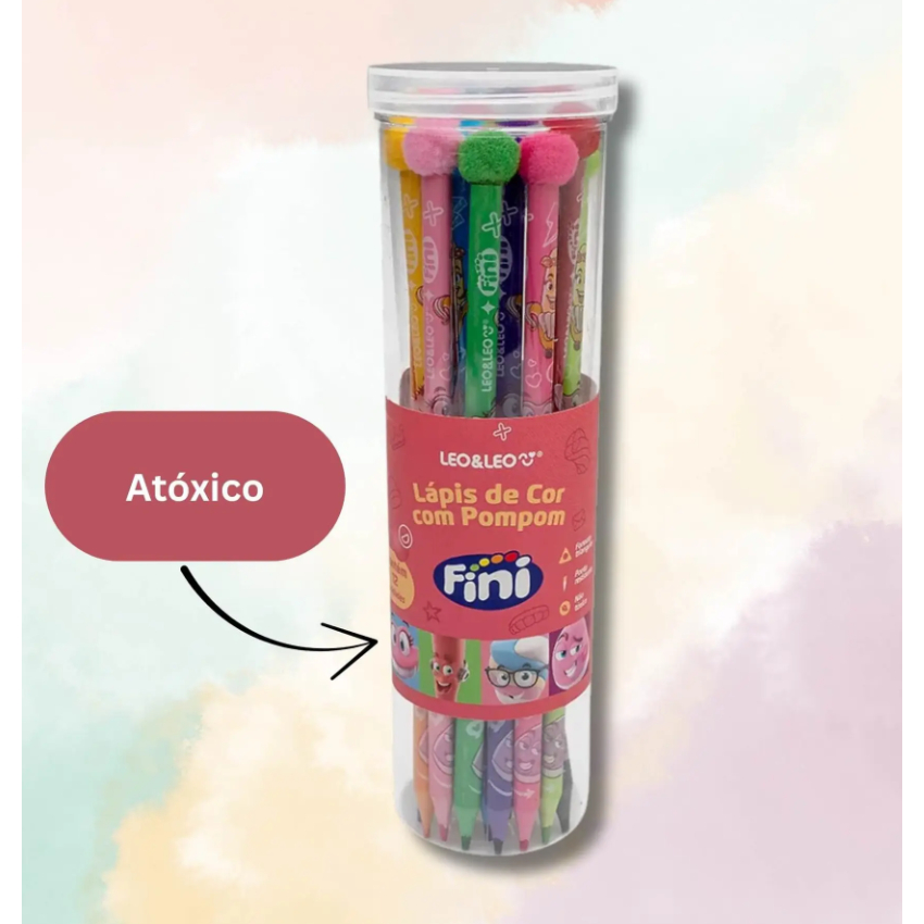 Lápis de Cor Com Pompom Fini Pote Com 12 Cores. Leo & Leo