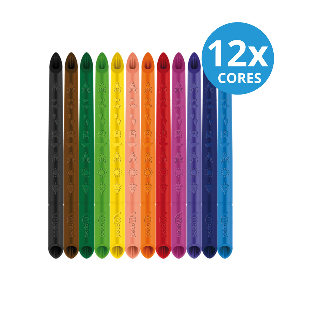 PAIS DE COR 12 CORES MAPED REDONDO - Pedidos feitos até as 12:00 (Seg a Sex) serão enviados no mesmo dia !!! - DESCRIÇÃO: • Marca: Maped • Cores: 12 Cores • Lapìs Infinito • Dura 10x Mais • Surpe Resistente • Não e Preciso Apontar • Otima Pegada Com mais Firmeza Otimo Para crianças Finalmente, nossa imaginação imparável encontrou seu par! Lápis de cor inovadores que duram 10 vezes mais. Lápis 100% com ponta, 100% utilizáveis, 0 de desperdício, em conformidade com as regulamentações de brinquedos. Não é necessário apontá-los, eles se afiam enquanto estão colorindo. Lápis triangular para uma melhor aderência. Design original e patenteado que permite às crianças colorir em ambos os lados.