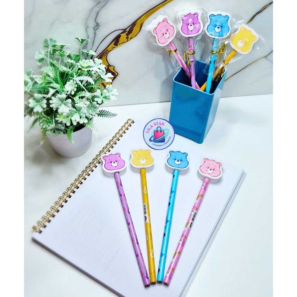 Lápis de Escrever HB com Borracha Ursinhos Carinhosos - Papelaria Fofa Criativa