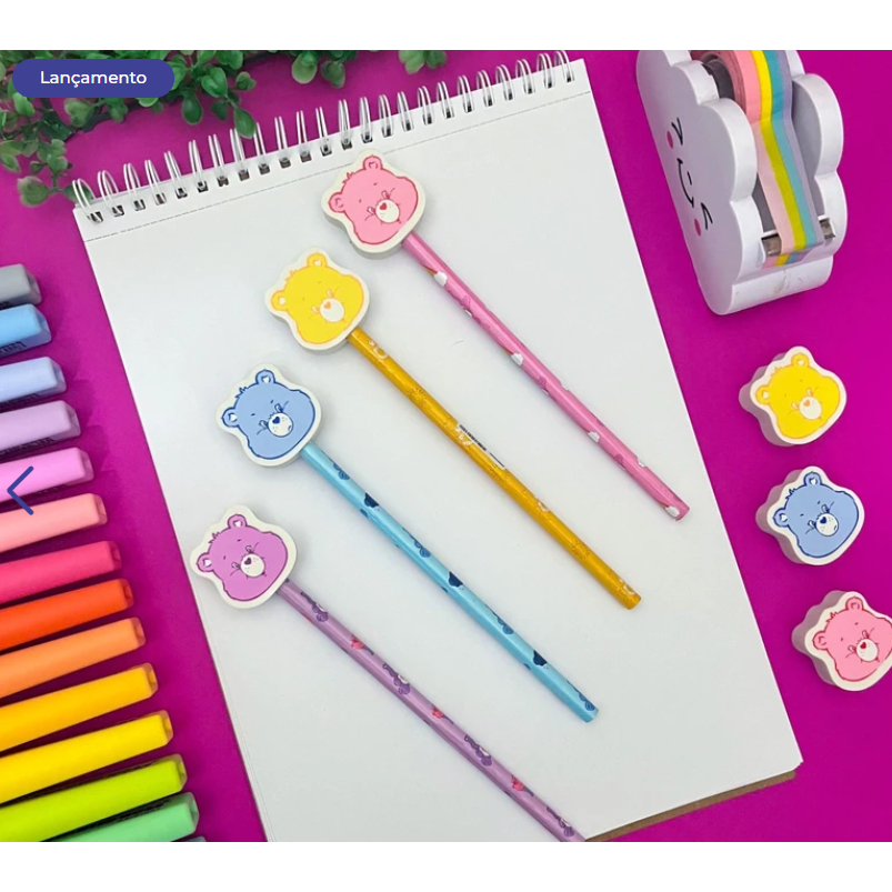✨ Eles voltaram! Os adorados Ursinhos Carinhosos agora em forma de lápis grafite HB. 🖍️ Apresentamos os Lápis Ursinhos Carinhosos, com 4 opções de Ursinhos que vão encantar crianças e adultos. Cada lápis vem equipado com uma borracha super prática para corrigir com facilidade e manter a criatividade sempre fluindo. 🌈 Com design fofo e cores lindas, esses lápis são perfeitos para estudos, desenhos e momentos de diversão. São leves, confortáveis para segurar e ideais para estimular a imaginação. 💖 Traga o charme e a nostalgia dos Ursinhos Carinhosos para sua rotina com esses lápis cheios de personalidade e encanto! Garanta já o seu e deixe sua escrita e arte muito mais especiais!