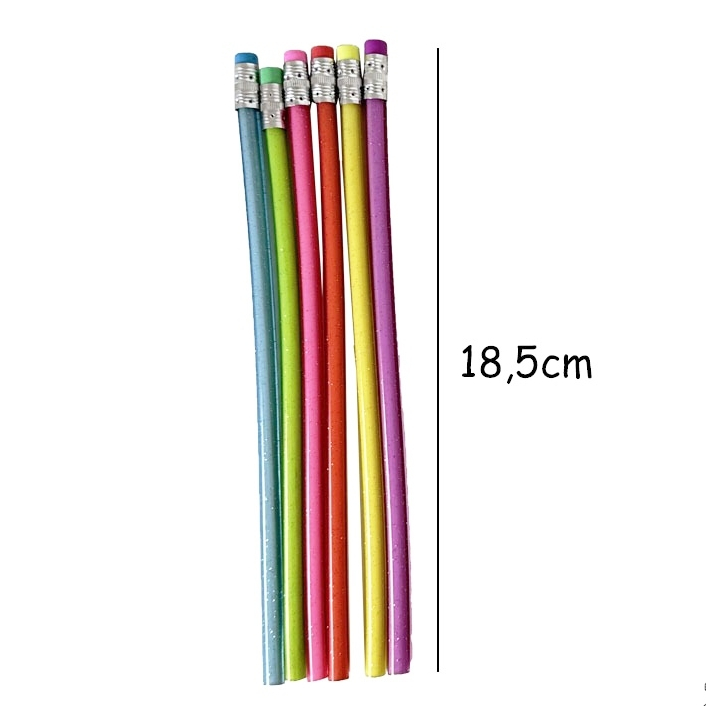 Os lápis flexíveis são uma opção divertida e criativa para quem busca algo diferente. Eles são feitos de material flexível, permitindo que sejam dobrados ou moldados sem quebrar. Além disso, possuem uma escrita macia e suave, ideal para crianças, estudantes ou até mesmo como presentes criativos. Esses lápis geralmente vêm em cores vibrantes e podem ser usados tanto para escrever quanto para decorar ou criar formas divertidas. *A Cor do corpo do lápis pode variar conforme disponibilidade no estoque. Não é possível escolher. Em caso de dúvida sobre o produto, fica a vontade para entrar em contato, iremos responder o mais rápido possível.