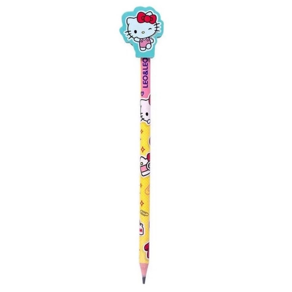 LÁPIS GRAFITE HB COM BORRACHA HELLO KITTY / LEO&LEO / PAPELARIA FOFA KAWAII / MATERIAL ESCOLAR