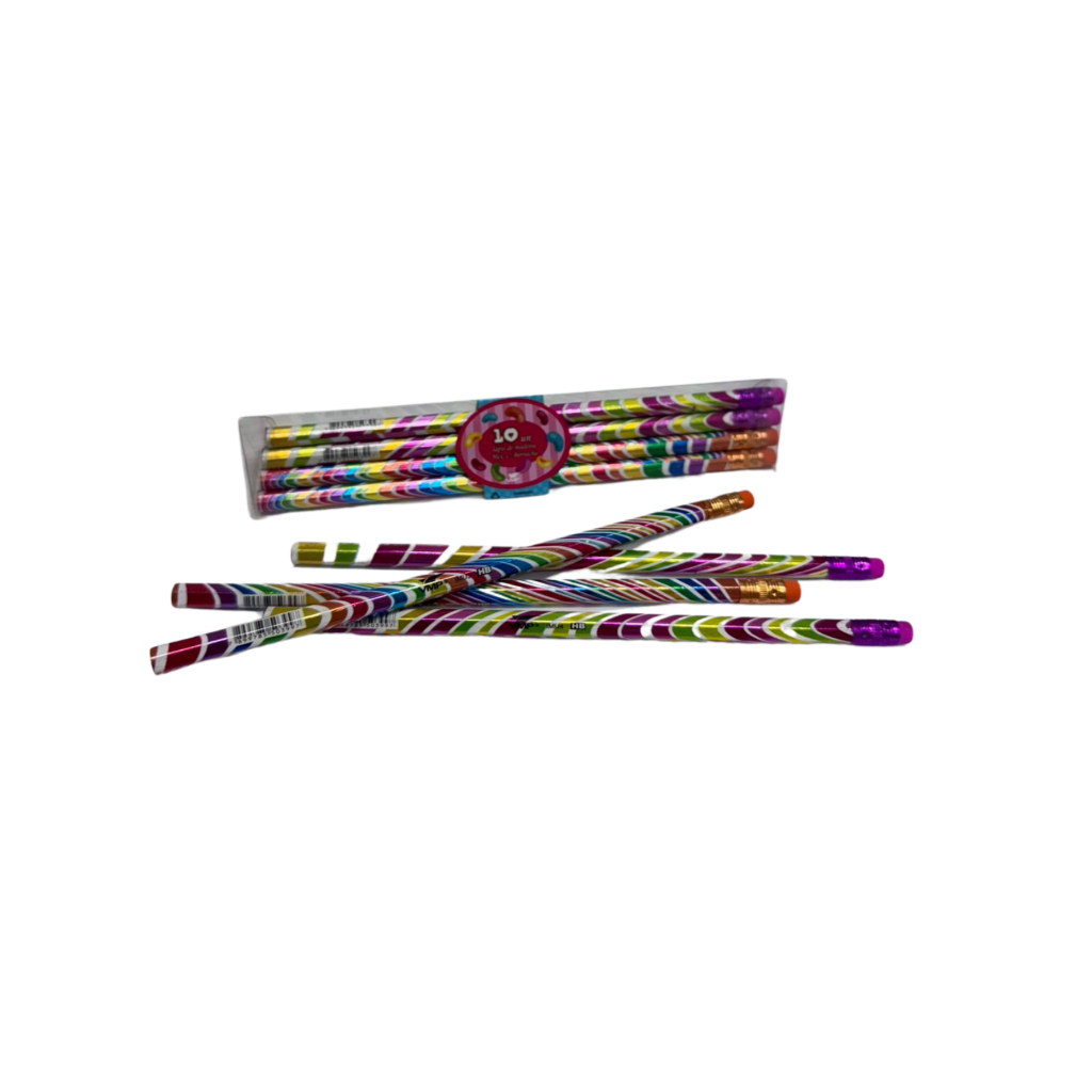 Lápis Grafite Preto Madeira Com Borracha Kit Com 10 Lolipop Escolar Escritório Colorido