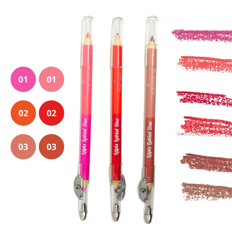 Lápis Labial Mia Make 2 em 1 - 2 cores/pontas em cada lápis - vem com apontador - cores pigmentadas - ponta macia ideal para Ombre Lips ou contorno do dia a dia marca: Mia Make validade: 2027