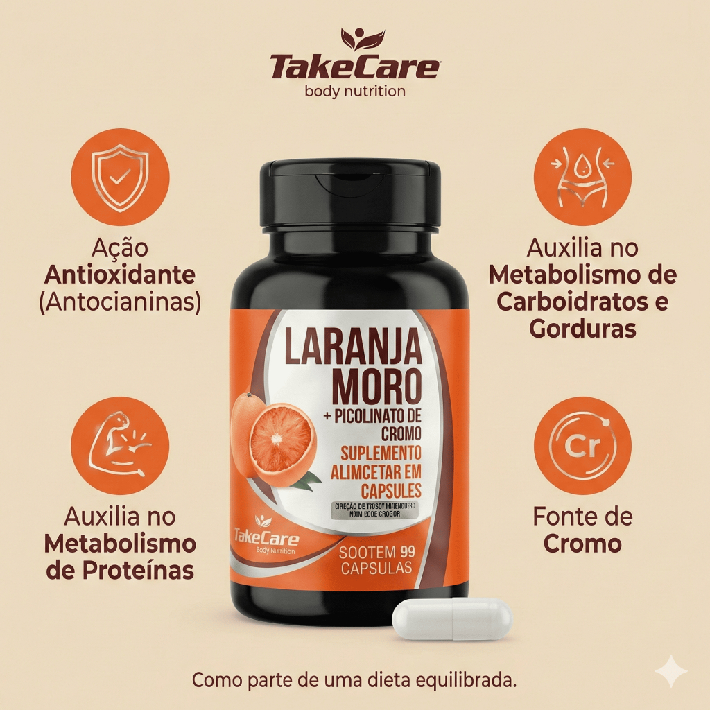 Laranja Moro Com Picolinato De Cromo 60 Caps Take Care 500mg Extrato Citrus Sinensis 714% VD