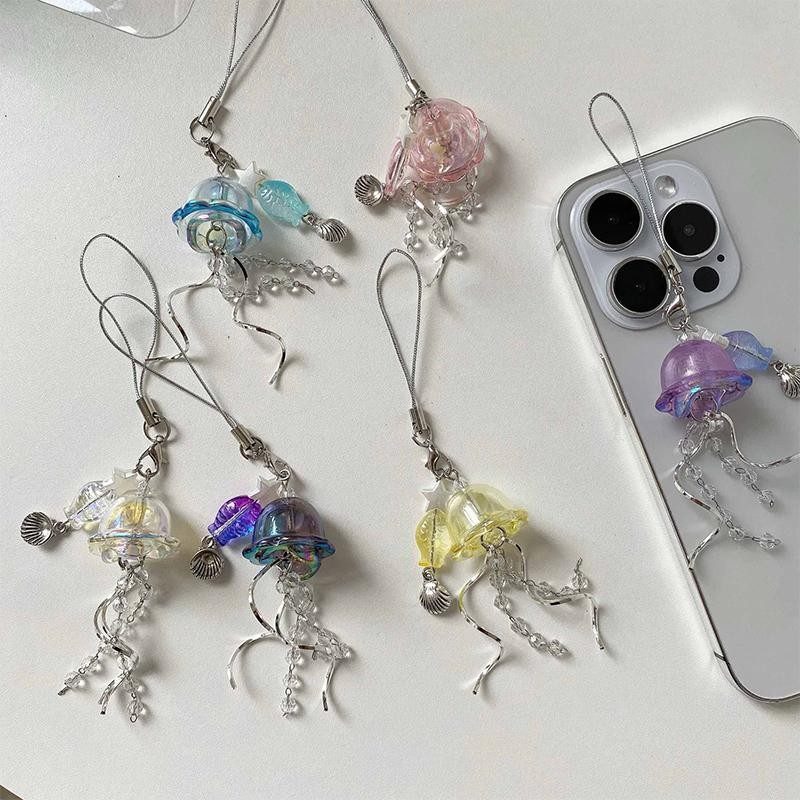 [largeloohg] Original Dream Jellyfish Phone Chain Cristal Transparente Vida Marinha Chaveiro Pingente De Metal Curvo