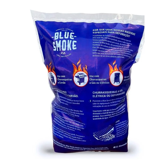 LENHA FRUTÍFERA P/ DEFUMAÇÃO | WOOD CHIPS | LASCAS DE LENHA (1KG) Já comeu aquela comida com um toque defumado e pensou: Nossa, poderia conseguir fazer isso em casa? A gente também! Foi pensando nisso que criamos a BLUE SMOKE®. Oferecemos lenhas frutíferas, 100% naturais, com a melhor qualidade e selecionadas artesanalmente. Um produto feito por e para amantes de um bom Churrasco e Defumado. CARACTERÍSTICAS: - 100% natural, sem tratamento químico posterior na madeira. - Sabor e aroma defumado ao alimento. - Bom para carnes de todos os tipos, queijos, legumes, temperos, etc. - Pode ser usada em churrasqueiras à carvão, gás, elétricas ou defumadores. - Rendimento médio: 6 usos, com aproximadamente 150g de lenha cada. COMO USAR: - Separe uma porção de cerca de 100 – 150g de lascas (um punhado) e coloque sob a bandeja descartável de alumínio que vem inclusa gratuitamente no pacote. - Posicione a bandeja (ou similar) com as lascas sob o carvão (se for churrasqueira de alvenaria) ou sob o queimador do gás (na churrasqueira a gás) e aguarde a fumaça começar a ser liberada. Leva de 5 – 10 minutos. - Feito isso, basta posicionar o alimento que quer defumar na grelha, logo acima de onde sai a fumaça. - Cada porção sugerida, irá render em torno de 30 minutos de defumação, o que já dá um sabor na medida para o churrasco tradicional. Caso queira mais intensidade, basta repetir a operação. DICAS: - Você pode controlar a intensidade colocando as lascas mais próximas ou mais afastadas da fonte de calor. - Evite que os chips peguem fogo. Queremos apenas fumaça. Caso isso aconteça, fique tranquilo(a). Basta borrifar um pouco de água. - Você ama churrasco? Recomendamos comprar a nossa SMOKER BOX para ter um melhor aproveitamento das Wood Chips em contato com o calor. Acessório feito em Aço Inox 304 de alta resistência e durabilidade. Ideal para quem quer praticidade e durabilidade na hora de fazer o seu assado. ESPECIFICAÇÕES: - Peso: 1 kg - Lascas de Lenha Frutífera de Macieira
