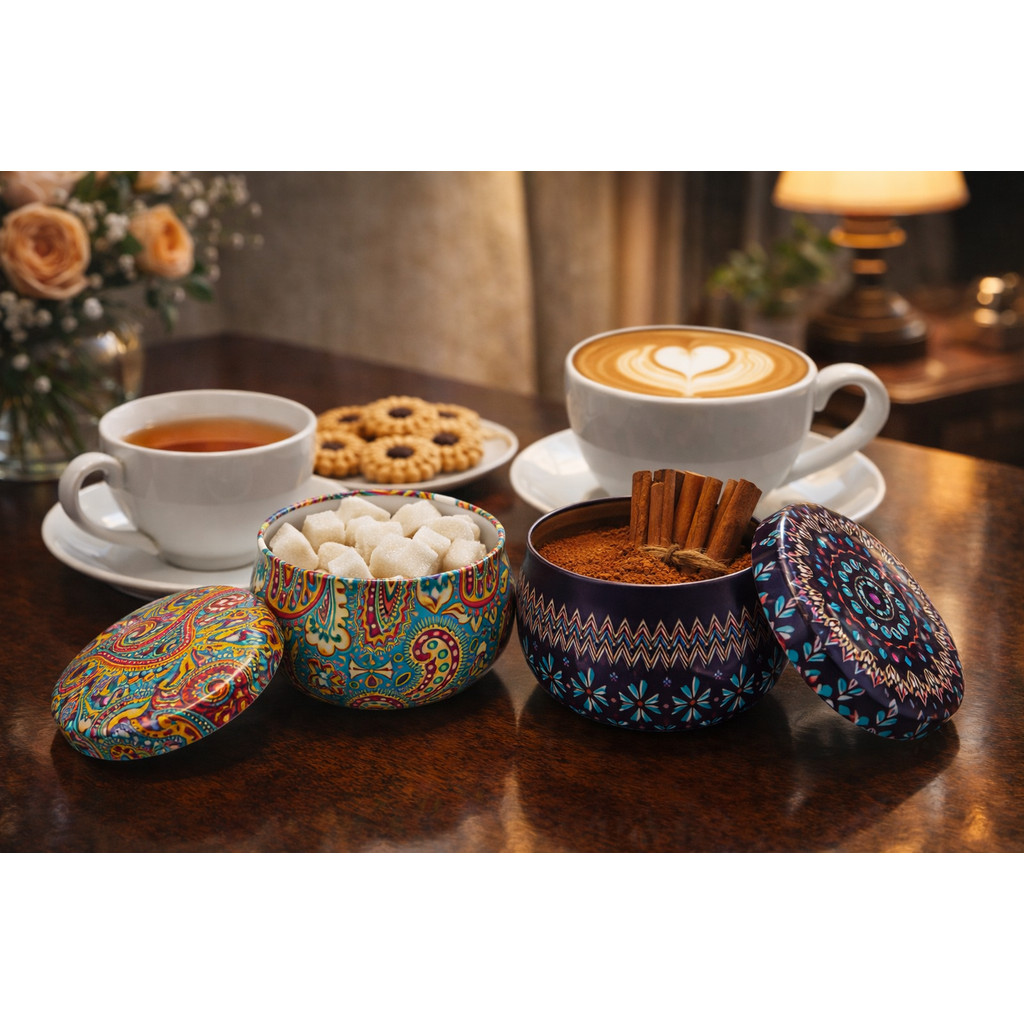 ** PRODUTOS EM ESTOQUE, ENVIO IMEDIATO ** Latinhas Mandala Decorativas - Kit Exclusivo com 6 peças! Alta procura para presentes! Ideal para datas especiais! – Charme que Transforma Qualquer Ambiente! Alguns objetos não precisam de explicação técnica — eles conquistam pelo olhar.Essas latinhas são exatamente assim: pequenas joias decorativas, com estampas ricas em detalhes, cores sofisticadas e acabamento que transmite delicadeza e bom gosto. Perfeitas para quem aprecia uma casa com personalidade, elas se adaptam a incontáveis usos: - Mini velas aromáticas cheias de estilo - Porta-balinhas e confeitos para receber visitas - Recipiente para chás, canela, açúcar ou café - Organizador de bijuterias e pequenos tesouros - Lembrancinhas, enfeites elegantes para momentos especiais O interior é pintado com tinta esmaltada, o que permite guardar alimentos secos com segurança e praticidade. Possuem um bom fechamento, a tampa é bem justa. São itens de decoração que contam histórias: ficam lindas sobre a mesa do café, perfumando o closet com flores secas ou iluminando a noite como velas delicadas. Cada peça tem alma artesanal e aquele toque vintage que faz qualquer cantinho parecer cenário de revista. Um mimo para presentear — ou para se presentear. Detalhes que encantam Estampas elegantes e variadas Acabamento interno esmaltado Fechamento firme e seguro Design atemporal e versátil Observação: as latinhas são enviadas vazias, cores sortidas, prontas para você dar o uso que a sua criatividade pedir.