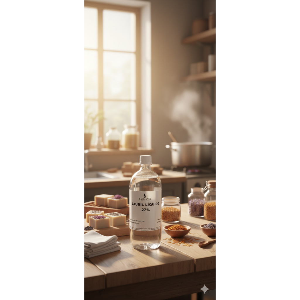 Lauril Líquido 27% é o Lauril Éter Sulfato de Sódio (LESS 27%), um tensoativo aniônico essencial, transparente e viscoso, famoso pelo alto poder espumante e detergente, usado em shampoos, sabonetes, detergentes e limpa-tudo para remover sujeira e criar espuma abundante, sendo uma matéria-prima versátil e de bom custo-benefício para produtos de higiene e limpeza. O que é: Um tensoativo (surfactante) que reduz a tensão superficial da água. Derivado do ácido láurico, com origem natural ou sintética. Principais características: Excelente Espuma: Forma muita espuma, ideal para produtos de banho e limpeza. Boa Detergência: Remove gorduras e impurezas eficazmente. Solubilidade: Dissolve-se bem em água. Versatilidade: Pode ser usado puro ou diluído, e sua consistência pode ser ajustada com sal (salmoura). Usos Comuns: Higiene Pessoal: Shampoos, sabonetes líquidos, espumas de banho. Limpeza Doméstica: Detergentes (lava-louças, roupas), limpa-tudo. Como é Usado: É um ingrediente base, misturado com outros componentes (como amidas e anfóteros) para criar a formulação final do produto. A concentração exata varia conforme o produto desejado, mas ele é a forma diluída do lauril mais concentrado (70%). Em resumo, o lauril 27% é o "motor" da espuma e da limpeza na maioria dos produtos que usamos no dia a dia.