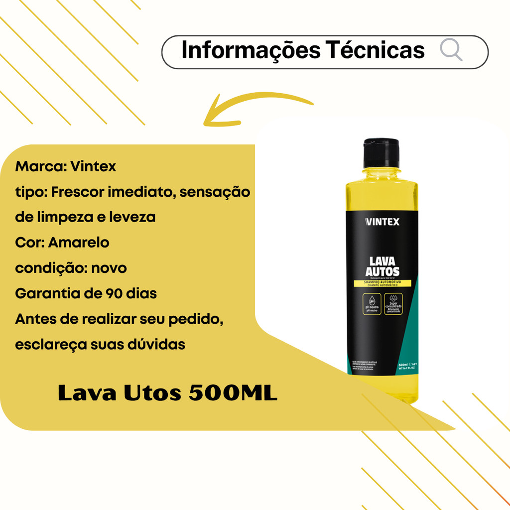 Lava Autos Shampoo Automotivo 500ml Ph Neutro Vintex Brilho, Limpeza, Proteção - Vonixx
