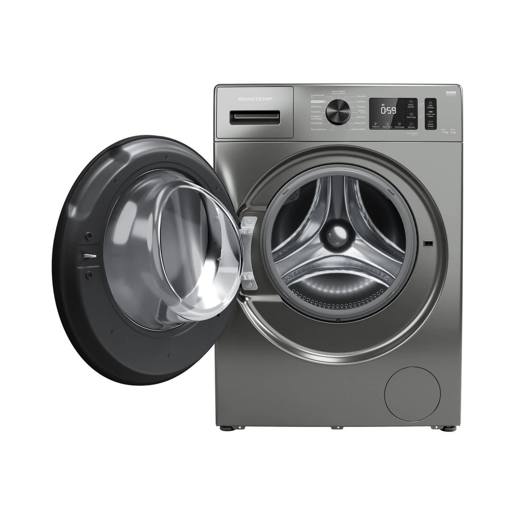 A Lava e Seca Brastemp Titanium 11kg/6kg BNO11AS combina modernidade e praticidade em um só produto. Com capacidade de lavar até 11kg e secar 6kg, é perfeita para famílias que precisam de performance sem abrir mão de espaço. O design na cor titanium traz sofisticação para a lavanderia, enquanto os ciclos inteligentes ajustam automaticamente o tempo e a intensidade conforme o tipo de tecido. A função de secagem elimina a necessidade de varal, garantindo roupas prontas para uso em menos tempo. Além disso, o painel intuitivo facilita o uso, oferecendo recursos que preservam as fibras dos tecidos, reduzem odores e amassados, proporcionando economia de tempo e mais comodidade para o dia a dia.