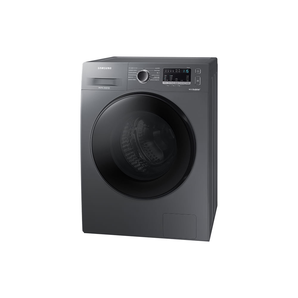 Economia de Água Economia de água acima da média do mercado Menos água em cada ciclo A lava e seca Samsung WD11A economiza cerca de 20% de água por ciclo, quando comparado a média do mercado dentro desse segmento, segundo testes do Inmetro. Economia para você e menos impacto no planeta Categoria Lava e Seca Front Load entre 10kg e 12kg. Conforme testes do Inmetro com a tabela disponível em https://pbe.inmetro.gov.br/#/programas acessados em 13/05/2025. Multifuncionalidade Lava, seca e esteriliza a seco 3 em 1 Roupas sempre bem cuidadas com a lava e seca que lava, seca e esteriliza a seco. Com o ciclo de lavagem a seco, você elimina odores indesejáveis, além de até 99,9% das bactérias e alérgenos que causam problemas respiratórios, sem usar água ou sabão. Ideal para proteger sua saúde e da sua família. Esterilização: refere-se aos ciclos de lavagem a Seco (Air Wash), que consiste em uma lavagem sem utilização de água ou produtos químicos que remove 99.9% de certas bactérias, com base no relatório de teste realizado pela Intertek. Praticidade e rapidez Lavagem Rápida em 15min e Lava e Seca em 59min A WD11A lava e centrifuga as roupas em 15min no ciclo rápido destinado a pequenas cargas, com sujeira leve. Ela ainda possui um ciclo de lavagem e secagem de 59min para garantir mais praticidade e tempo pra você. Lavagem rápida em 15": Para peças levemente sujas com menos de 2 kg. Lava e Seca em 59": Cargas de menos de 1 kg. Carga recomendada de 3 a 4 camisetas ou camisas de algodão e poliéster (composição do tecido: 35% algodão / 65% poliéster). Lavagem intensiva para as manchas mais profundas Função Manchas Difíceis A função Manchas Difíceis ajuda a remover uma grande variedade de manchas no tecido, como sangue, chá, vinho, maquiagem e grama. Ao selecionar essa função, as peças de roupas são colocadas completamente de molho em água com bolhas de sabão tornando a lavagem ainda mais eficaz. Função Manchas Difíceis: adiciona até 30 minutos em 3 ciclos (Algodão, Sintéticos, Vapor Higiênico). Testado em conformidade com a IEC 60456 5a edição / 8kg de carga de lavagem/opção Manchas difíceis contra algodão a 40 °C/60 °C, Sintéticos 60°C e Jeans 40°C sem opção Manchas Difíceis. Resultados individuais podem variar. Bolhas poderosas Ecobubble™ A tecnologia exclusiva Ecobubble™ produz bolhas de sabão que tornam a lavagem muito mais cuidadosa e poderosa. Ela facilita em 40x a penetração do sabão no tecido, promove uma lavagem mais eficaz mesmo com água fria e com mais economia de energia. Facilita em 40x a penetração do sabão no tecido: testado em conformidade com a IEC 60456-2010/4kg de carga de lavagem/Super Eco Wash a frio (WF80F5E5U4W) contra algodão a 40 °C sem EcoBubbleTM (WF0702WKU). Resultados individuais podem variar. Baseado no relatório do teste de desempenho feito em laboratório pela Springboard Engineering em tiras de EMPA, comparando uma solução de detergente normal e tecnologia de bolhas sem ação mecânica. Limpa com delicadeza, sem danificar os tecidos Tambor Diamante Diamond Drum, com o design em forma de diamante do tambor da lavadora Samsung é delicado com as suas roupas. Seus pequenos orifícios para escape da água também ajudam a proteger os tecidos, reduzindo o atrito e prevenindo que suas roupas desfiem durante a lavagem. Limpeza profunda com vapor eliminando até 99,9% de bactérias Vapor de Higiene Higienize suas roupas com o poderoso ciclo de vapor que libera ar quente, removendo sujeiras profundas, além de até 99,9% das bactérias e alérgenos inativos. Remoção de 99,9% das bactérias e alérgenos inativos: baseado no relatório do teste de comportamento do vapor de higiene da Intertek. Remove 99.9% de certas bactérias, incluindo Staphylococcus aureus e Escherichia coli. Resultados individuais podem variar. Projetado para usar todo o sabão e evitar desperdícios Dispenser Sempre Limpo O dispenser projetado com um sistema de passagem de água facilita a saída do sabão, mantendo o limpo e evitando desperdício de insumos Sua máquina sempre limpa Lavagem Eco do Tambor Mantenha sua máquina limpa de maneira ecológica. A Lavagem do Tambor Eco remove até 99,9% das bactérias causadoras de odor do tambor sem usar produtos químicos e ainda ajuda na manutenção do seu produto. E você ainda recebe uma notificação de quando a sua máquina precisa ser limpa. Remoção de 99,9% das bactérias: baseado no relatório do ciclo Lavagem do Tambor Eco realizado pela Intertek. Elimina até 99.9% das bactérias de dentro da lavadora. Notificação: fornece uma notificação a cada 40 ciclos. Garantia Mais economia, durabilidade e conforto 10 anos de garantia no motor Digital Inverter™ A tecnologia Digital Inverter™ garante mais economia, menor nível de ruído e maior durabilidade com 10 anos de garantia no motor Em comparação a motores não Digital Inverter. A Samsung concederá, ainda, apenas ao motor principal Digital Inverter, uma garantia de 10 (vinte) anos (legal + contratual), contada a partir da data de aquisição, ou da data da entrega do p