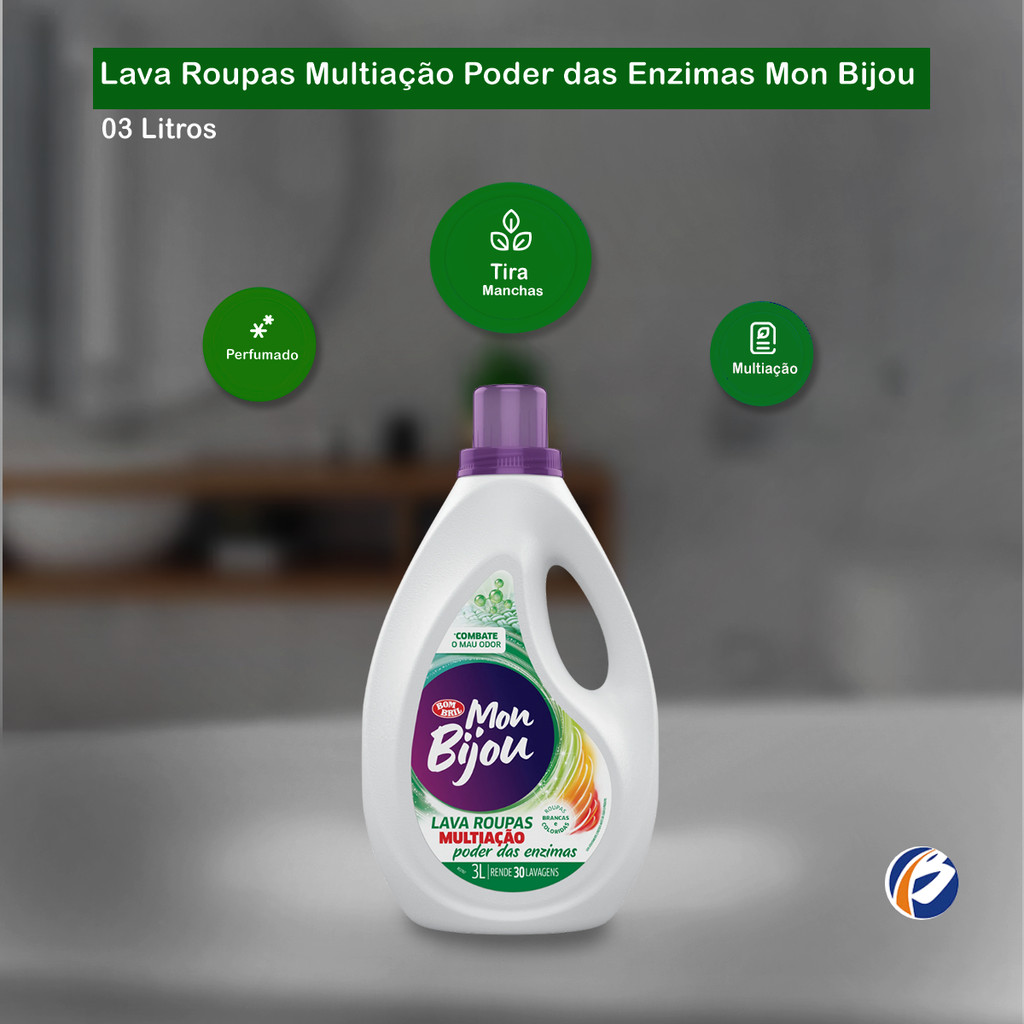 Lava Roupa Multiação com Poder Fresh 3L Mon Bijou Mon Bijou Lava Roupas é a solução certa para manter as suas roupas sempre limpas e livres de manchas difíceis, graças à sua fórmula de limpeza poderosa. Tudo isso, sem danificar o tecido e mantendo aquele aspecto de novo. Este lava roupas remove até as manchas mais difíceis, devolvendo o branco das roupas, protegendo as fibras e cores do tecido, agindo como um produto 2 em 1, já que tira manchas e lava o tecido Indicação de Uso: - Lavagem de roupas brancas e coloridas. Embalagem: 01 galão de 3L
