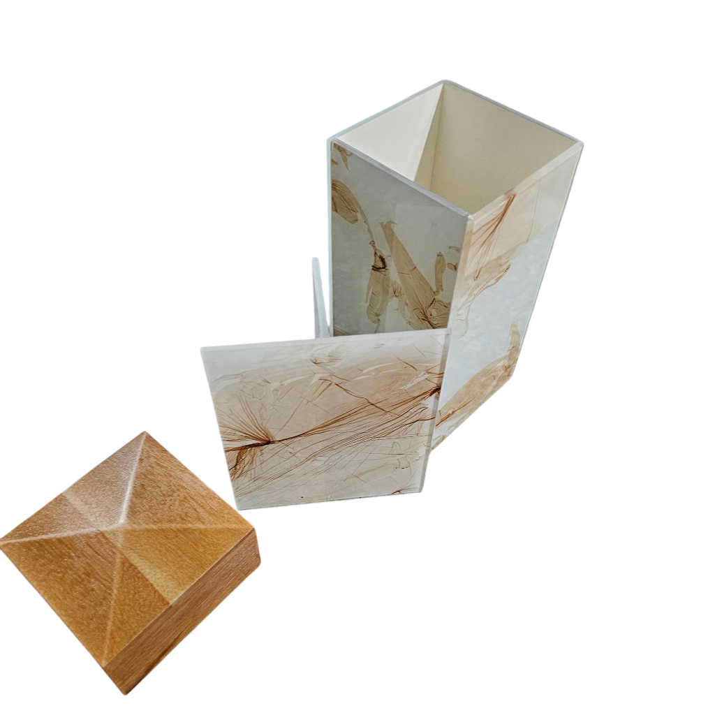 LAVABO Porta Escova Dentes Vidro Pintado efeito marmorizado com divisoria e tampa de madeira de alta