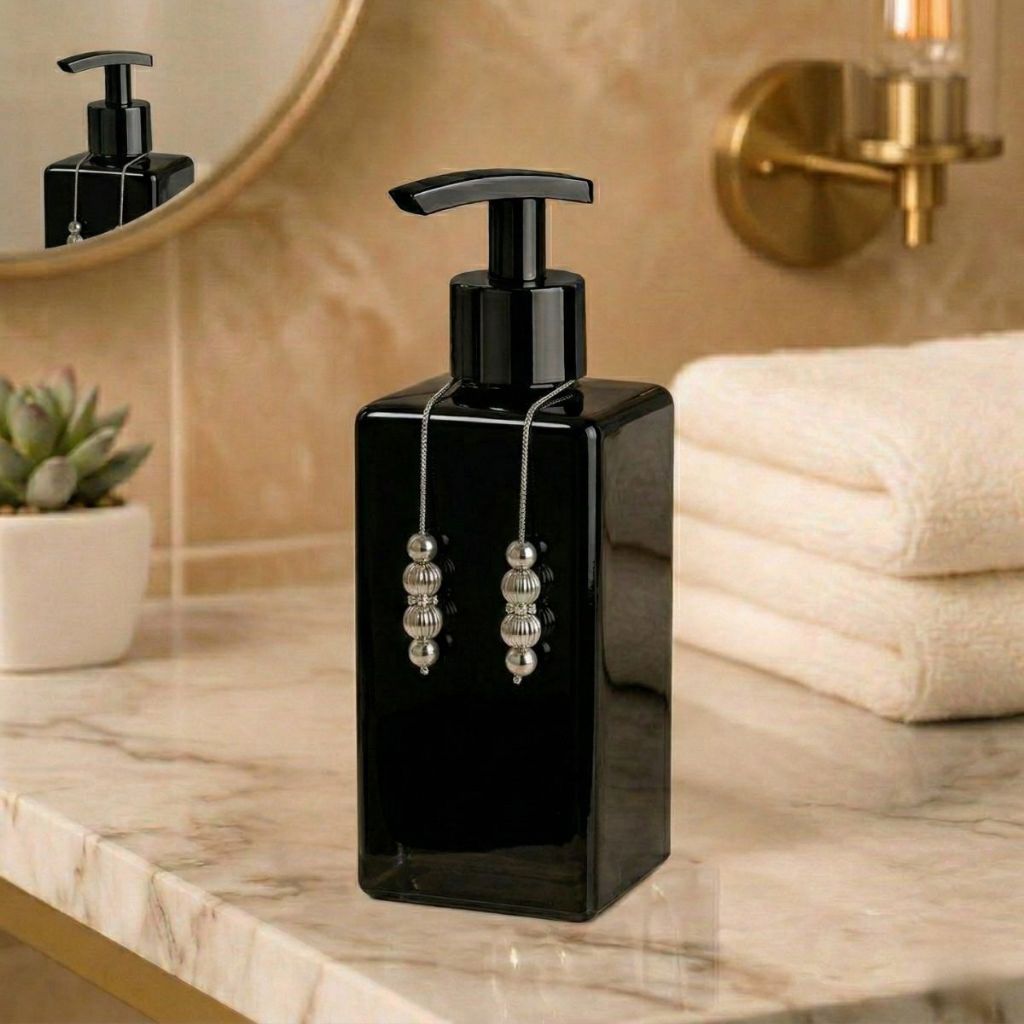 O Porta Sabonete Líquido em Vidro é perfeito para quem busca sofisticação e organização. Possui válvula resistente e design moderno que valoriza qualquer lavabo. ✔ Vidro resistente ✔ Acabamento premium ✔ Ideal para sabonete líquido, álcool gel ou porta detergente. ✔ Combina com decoração moderna CARACTERÍSTICAS: - 01 Cordão Decorativo Luxo - 01 Frasco de vidro Squere 250ml - 01 válvula para saboneteira. Medidas (Square): Capacidade: 250ml Altura: 12cm Largura: 6cm 🔎 TAGS (até 18 se possível) porta sabonete, dispenser banheiro, kit lavabo luxo, saboneteira vidro, decoração banheiro, acessórios lavabo, vidro preto, porta álcool gel, banheiro moderno